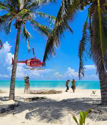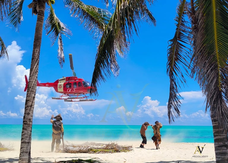 Participación como proveedor de servicios de helicóptero en la producción y grabación de un comercial en el sureste de México.